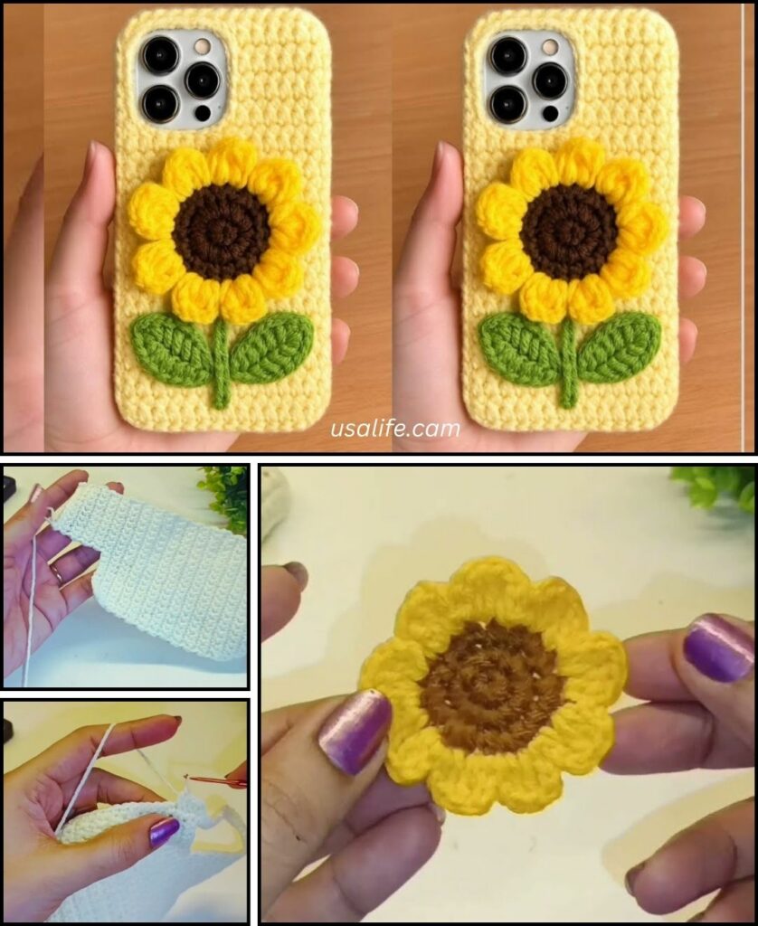 Here is a detailed guide on how to crochet a sturdy phone case with a cheerful, attached sunflower.