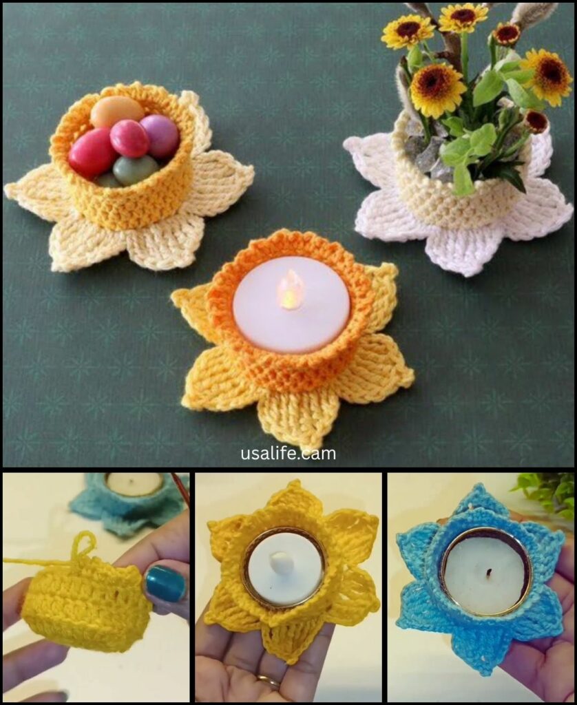 How to Crochet a Flower Tealight Candle Holder✨💖🌺🧨🧨