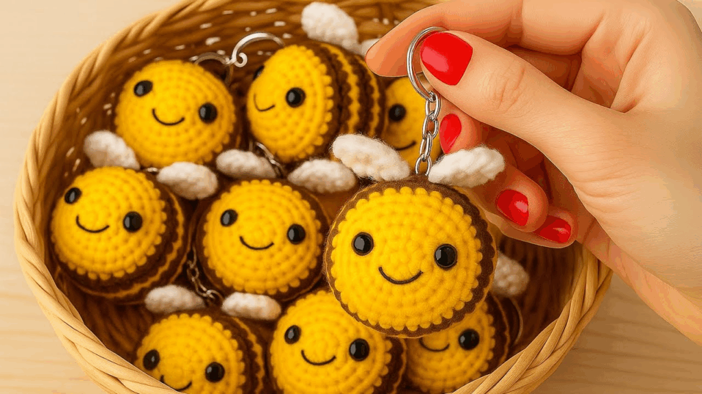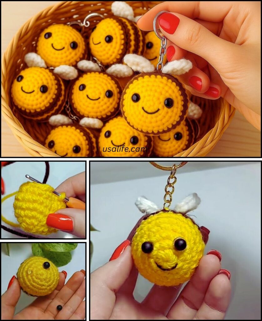 Crocheting the viral bee keychain is a fun, quick project that’s perfect for beginners! It’s a great introduction to Amigurumi, using simple shaping with single crochet (sc) and color changes to create the iconic stripes. The finished bee is small, puffy, and instantly recognizable.