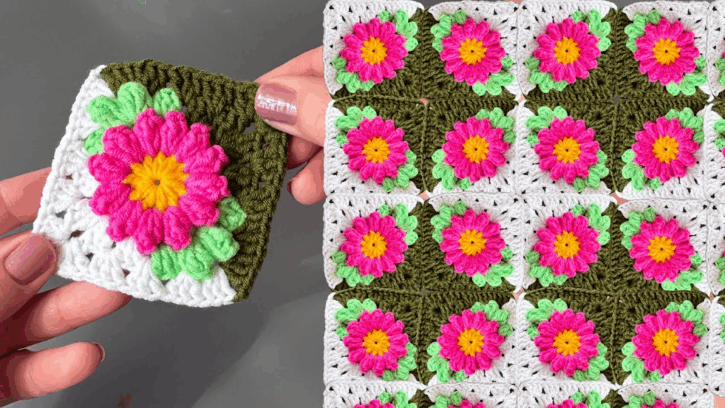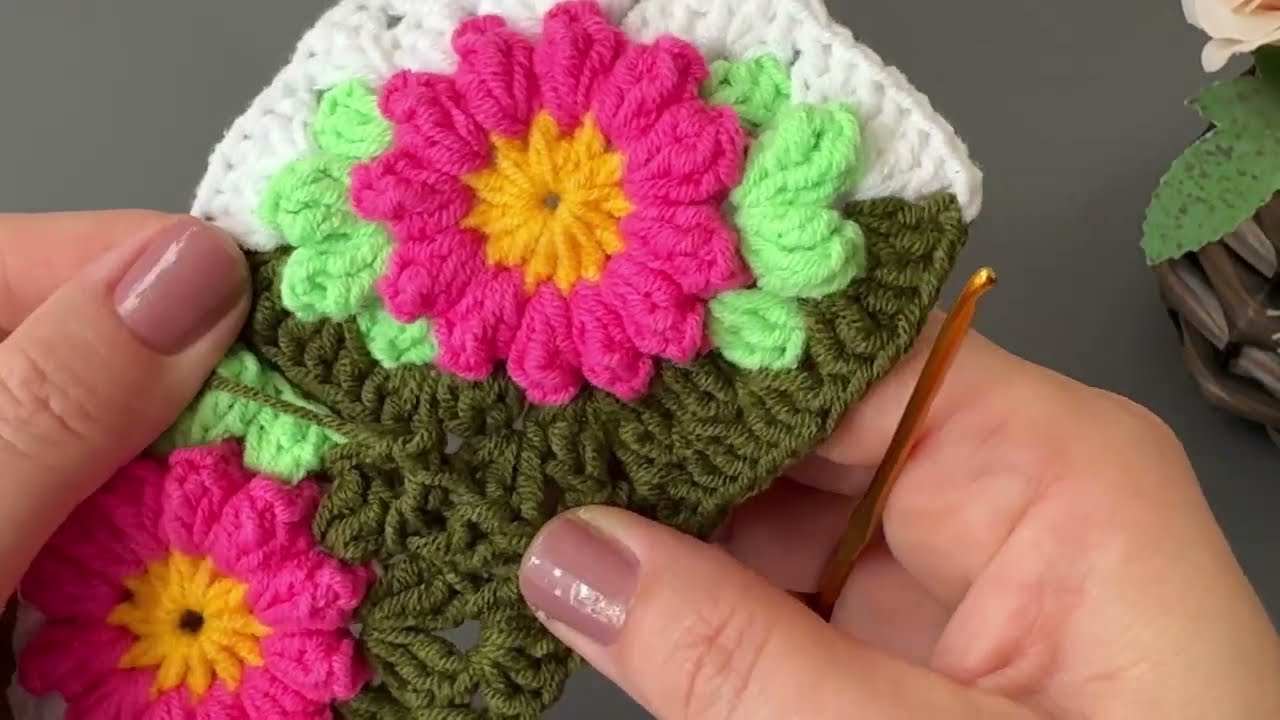 How to crochet a multi-colored floral motif🧶✨💖🌸