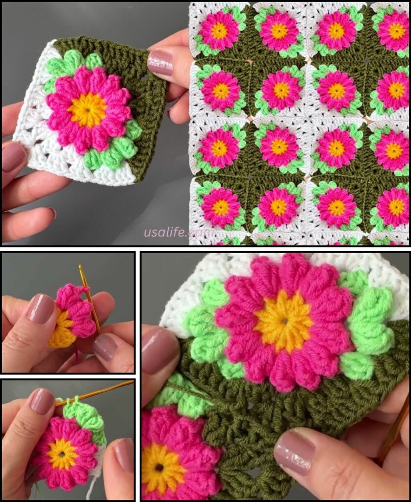 Here is a detailed, step-by-step tutorial on how to crochet this beautiful, multi-colored floral motif.