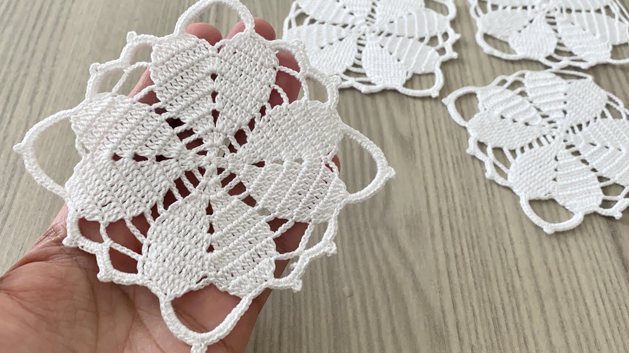 This pattern creates a heart floating within a simple mesh square. We will be working in turning rows.