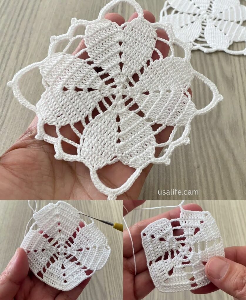Blocking: Blocking is essential for filet crochet! It straightens the lines and opens up the mesh, making the heart design perfectly visible. Wet the square, pin it to the correct shape, and allow it to dry completely.
