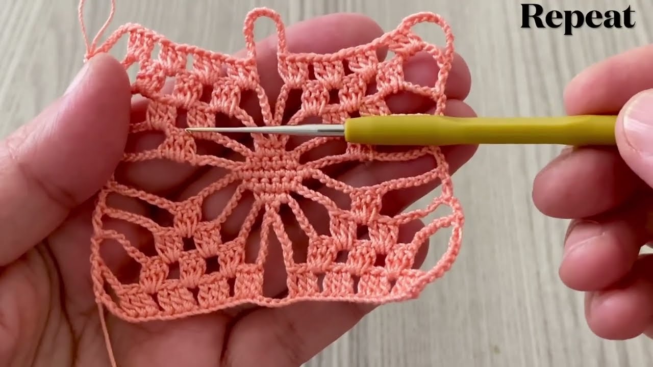 This motif uses double crochet (dc) and chain spaces to create an open grid—the classic “tile” look—that is easily joinable.