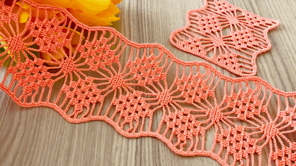 | Table Runner | A single strip of motifs (e.g., 3 tiles wide x 10 tiles long). | 2-3 rows of simple dc or a small scalloped edge (sc in 1, 5 dc in 1, sc in 1, repeat). |