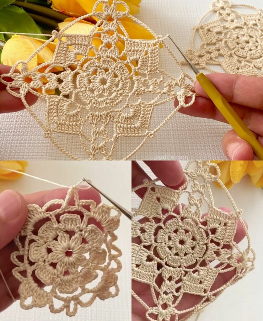 - Weave in Ends: Securely hide all tails on the back of the motif.