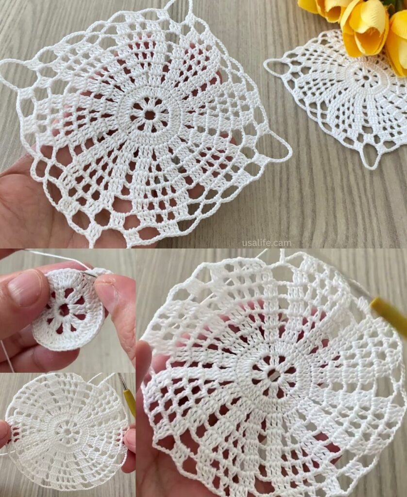This pattern uses a simple cluster structure, similar to the Granny Square, but utilizes six sides instead of four.