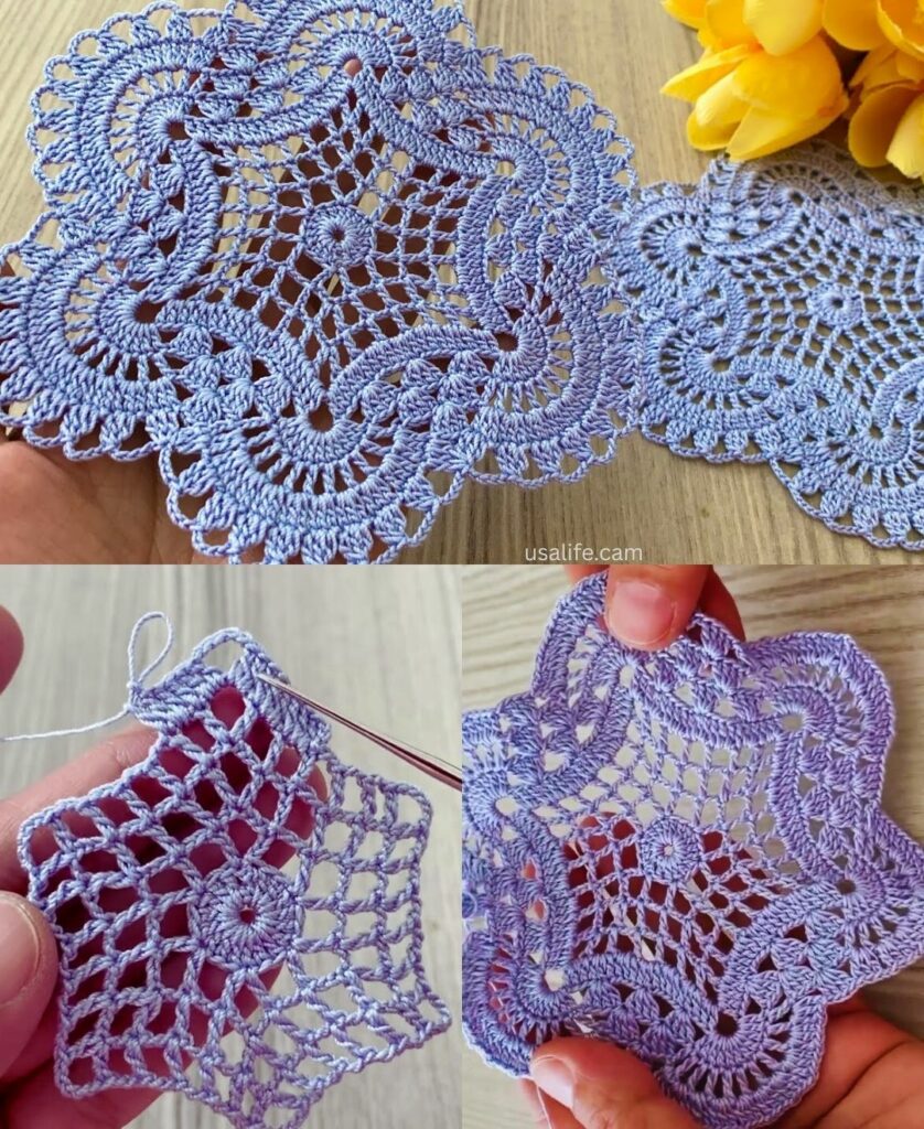 • When working a separator chain on the side that touches another motif, replace the ch 1 with a sl st into the corresponding ch-1 space of the finished motif.