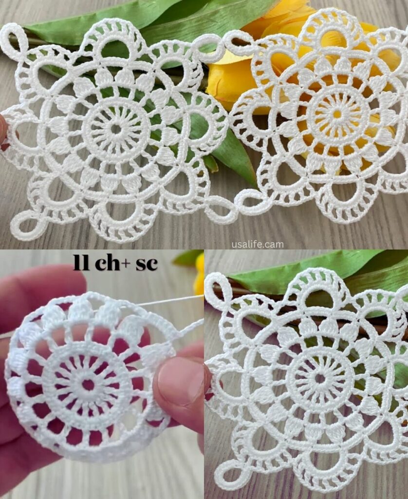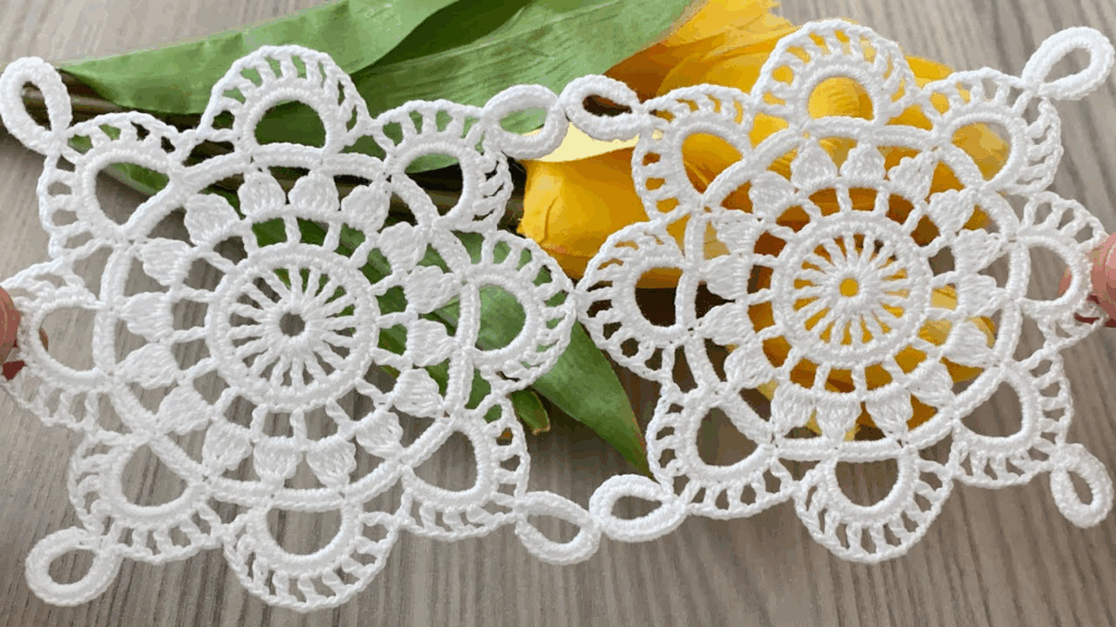 Lace RunnerShape: A long, narrow rectangular strip (e.g., 2 motifs wide by 8-12 motifs long).Edging: Add a simple SC or Picot border around the entire perimeter. Blocking is essential to ensure the runner lies flat.