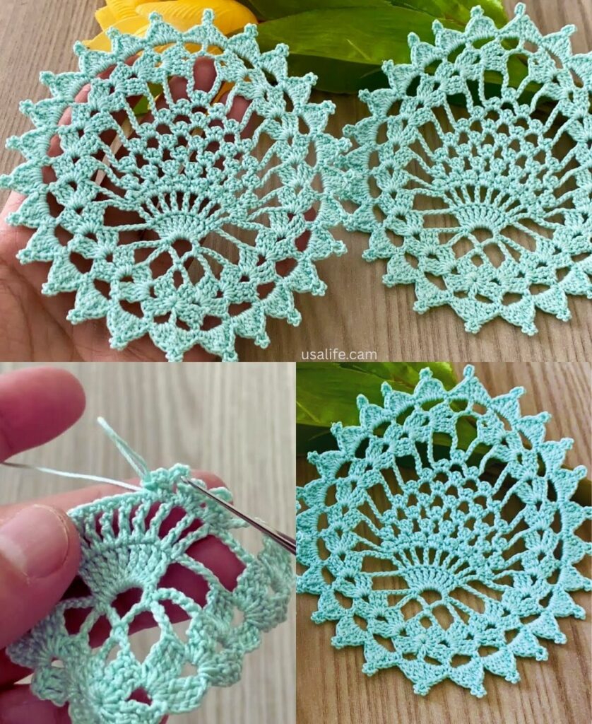 - Pin: Lay the damp motif flat. Use pins to sharply define the outer fan edge and pull the center of the pineapple grid taut and symmetrical.