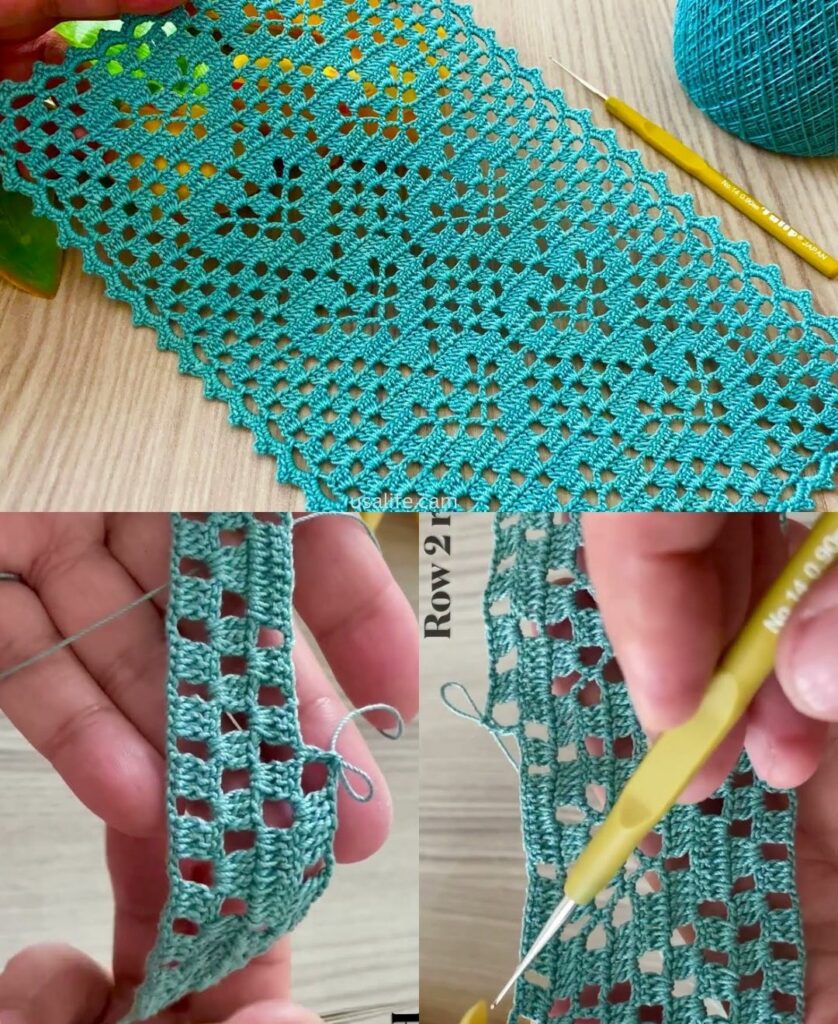 - Foundation: Ch 16. Dc in the 4th ch from hook (counts as first dc and first ch-sp).
