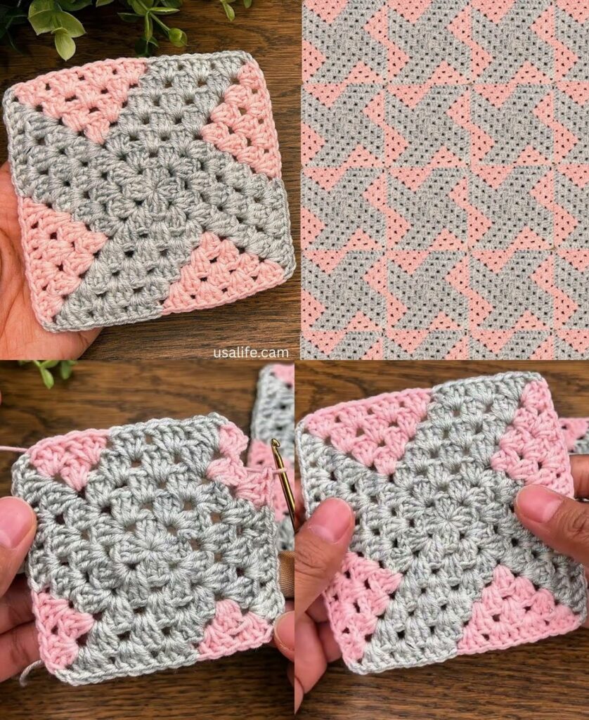 The Zigzag Square (sometimes called a Chevron Square or Ripple Square) is a modern twist on the classic granny square. Instead of flat rows, it creates a geometric “pulsing” effect that looks like a star or a ripple frozen in time.